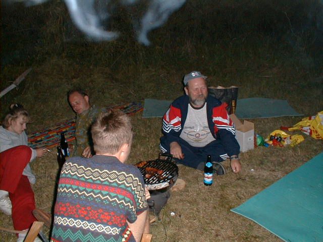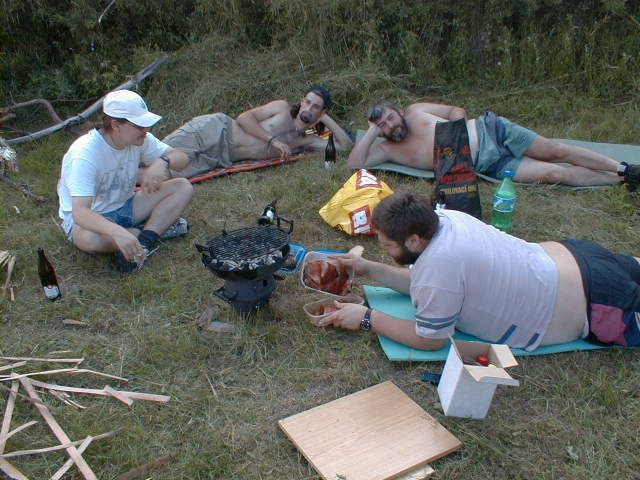ISAk junior zapisuje 5 spojeni Došli jim cigarety, tak se dělí u grilu o kouř To je pohoda, i grilovat se nechá v leže Kdo to maso obrátí? Jájájá hlásí se Radek Večer se také přijel za náma podívat OK1IAJ