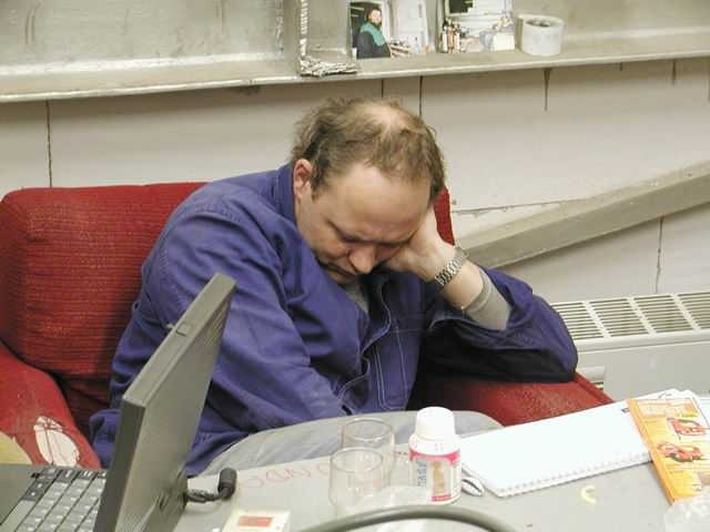 .... u odpolední kávy Ládík začíná lovit spojení ještě poslední opravy na rotátoru.... ...a může se začít na plno kybicové
